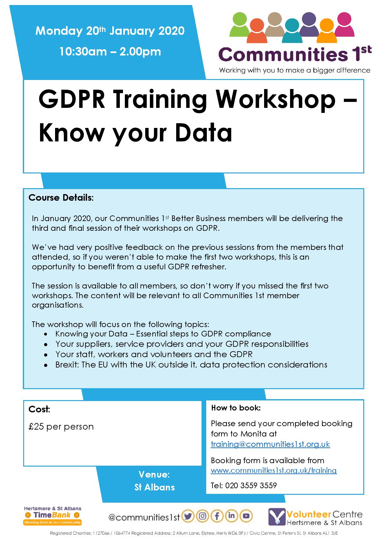 In January 2020, our Communities 1st Better Business members will be delivering the third and final session of their workshops on GDPR.