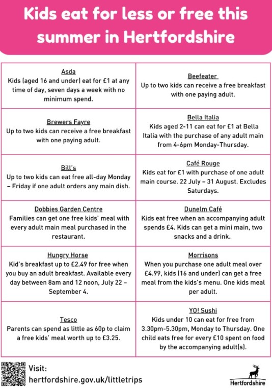 Meals can be able to collect from hubs based in Borehamwood, Potters Bar and Bushey every week day until Friday 2 September, excluding the August bank holiday.