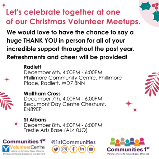 If you are one of our volunteers and would like to attend one of our Christmas Get-togethers you can register your interest through our links below.