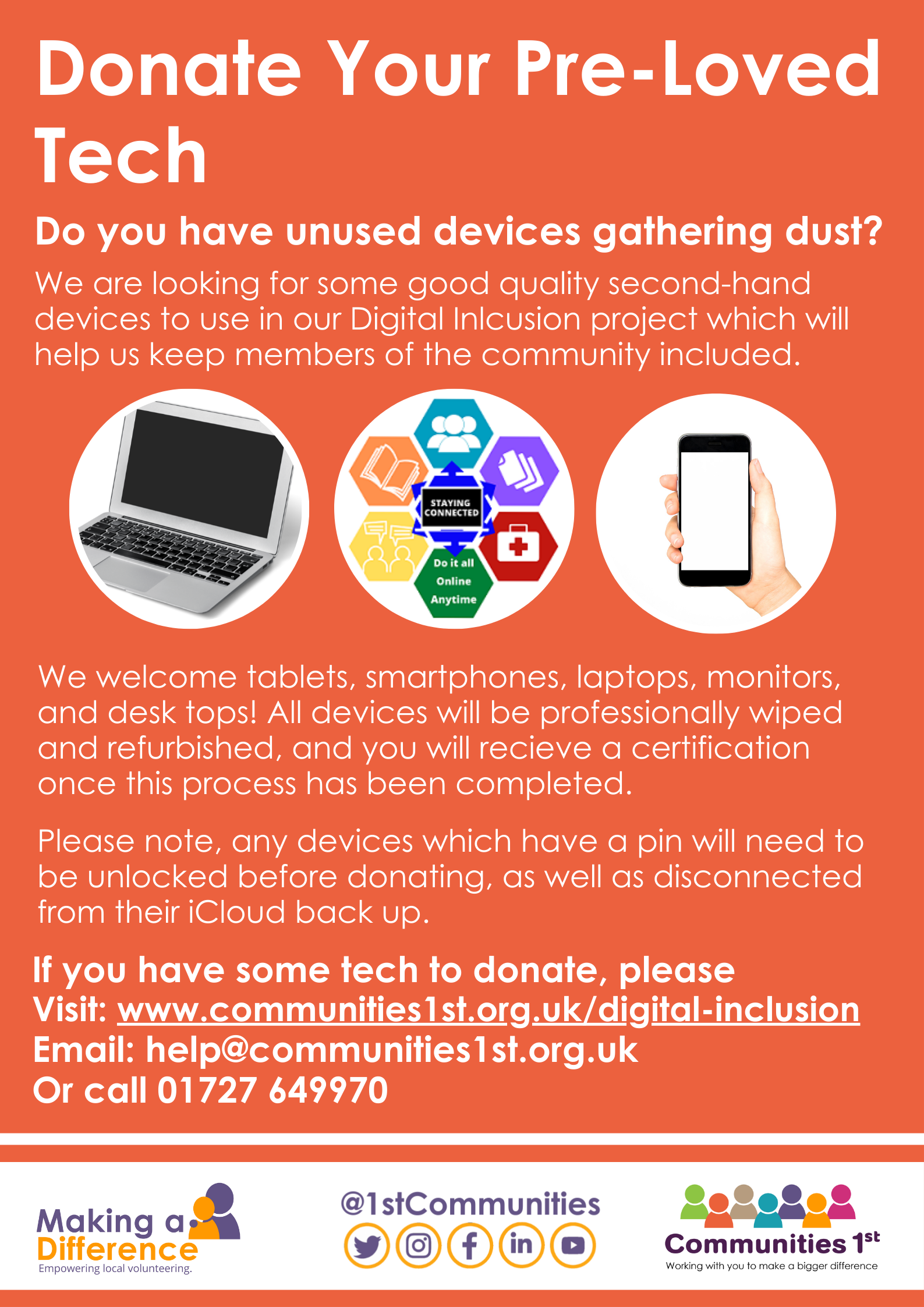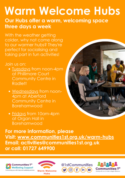On Thursday 15th December you can find Communities 1st at the "Cost-of-Living & Wellbeing Event" in Hertford (10am - 2pm). Come and say Hi!