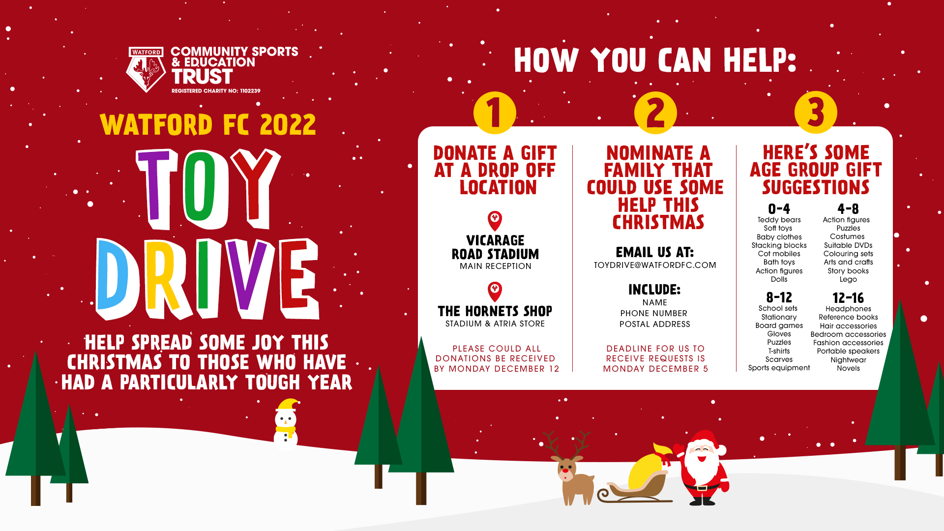 This is an initiative run by the Watford Football Club that allows the community to help those that are less fortunate and will struggle to buy their kids Christmas presents this year.