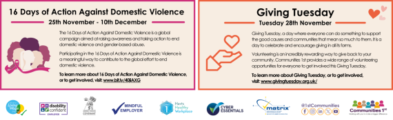 This Sunday, 19th November, Communities 1st will be supporting the St Albans Christmas Cracker event by running the "Community Safe Zone", a place offering some peace and quiet away from the crowd. This spectacular street festival takes place in the city centre from noon until 6pm. Come and say Hi! You’ll find us by Barclays Bank.