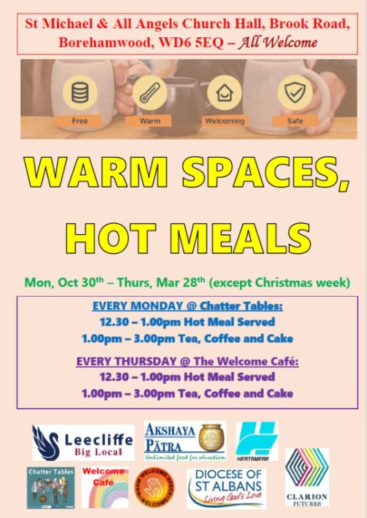 TUESDAY 16th JANUARY: Creative Community Café at Phillimore Place, Radlett (12pm - 4pm), Computers & a cuppa at the Healthy Hub in Leeming Road, Borehamwood (11.30 - 2.30), Men That Meet, Windsor Hall (1.30pm - 4 pm).