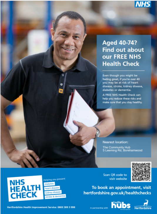 MONDAY 22nd JANUARY:       Creative Community Cafes at Windsor Hall, Borehamwood (10.30am - 2.30pm), Computer's and a Cuppa - Wyllyotts Centre, Potters Bar (10.30am - 12.30pm), NHS Health Check at Healthy Hub in Leeming Road, Borehamwood. Please contact the hub to book it.