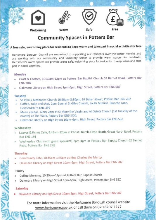 • Thursdays: Farriers Way Community Centre, Borehamwood from 10am - 2pm.