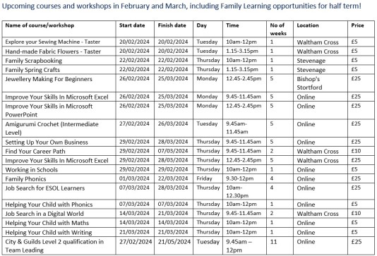 Upcoming courses and workshops in February, including Family Learning opportunities for half term! Please note booking closes ONE WEEK before the course/workshop begins.