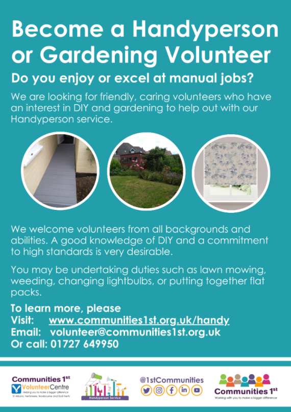 Whether your interest lies in gardening, or if you prefer interior DIY, or even both, let us know by emailing us or call us on 01727 649900, a staff member will be happy to explain this role further to you.