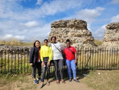 This week, we took some nurses from Lister Hospital to the city of St Albans to explore the Verulamium Lakes, walk around the St Albans Cathedral, and then have some free time to explore the shops and cafes. They learned about the Roman history of St Albans, even posing for a picture with the ancient ruins of the town of Verulamium's wall.