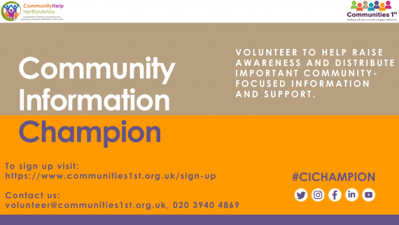 Our latest priority volunteering roles and training opportunities are promoted below. If you’d like to share any good news stories from the past year, even if you’re not currently able to volunteer, we’d love to hear them! Please email communitystories@communities1st.org.uk.
