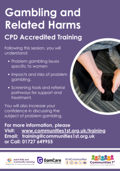 This CPD accredited training aims to help make problem gambling more identifiable for practitioners and volunteers working with women, men and young people in both generic and gender specific services.