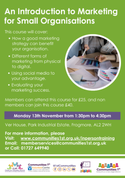 This course will be run by Christine Halpin- Communities 1st. Members can join this course for £25, and non members can join this course for £40.