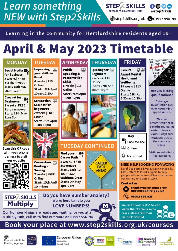 April is Mathematics and Statistics Awareness month. As part of increasing interest and upskilling adults in numeracy, we are delivering courses funded by the national project Multiply. Shopping on a Budget will help you shop better, smarter, and lighter on the pocket. Our Make Do and Mend course will help you save your much loved clothes, save money on expensive repairs and protect the environment. We have dates for April!