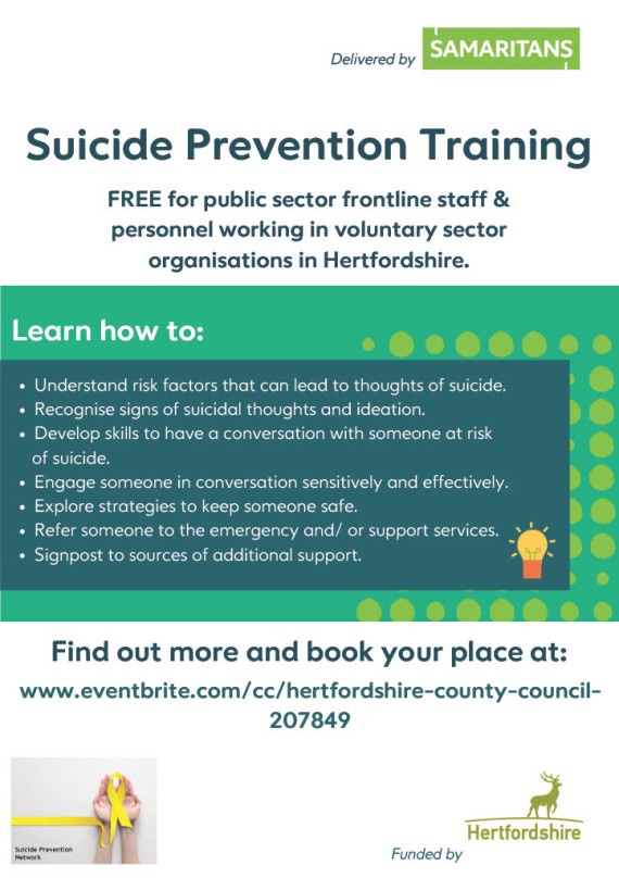Do you want to support others with their mental health? Become a Mental Health Peer Supporter! Mind in Mid Herts will be offering training to give you the skills to support others with their mental health and wellbeing.