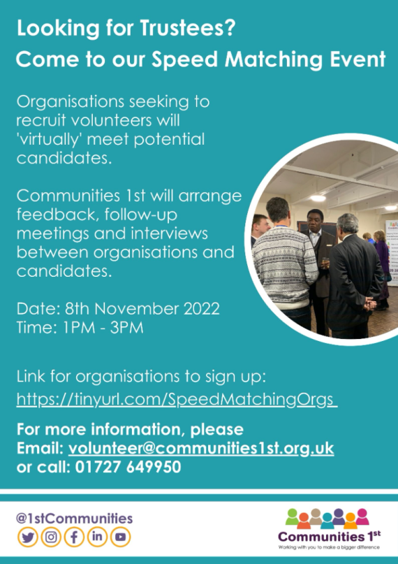 If you want more information you can visit our website or contact our Voluntary Sector support team on 01727 649940.