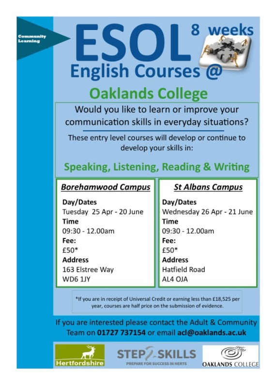 The college offers sessions in Stevenage, Watford, Ware and Hemel Hempstead as well as continuing to provide sessions online.