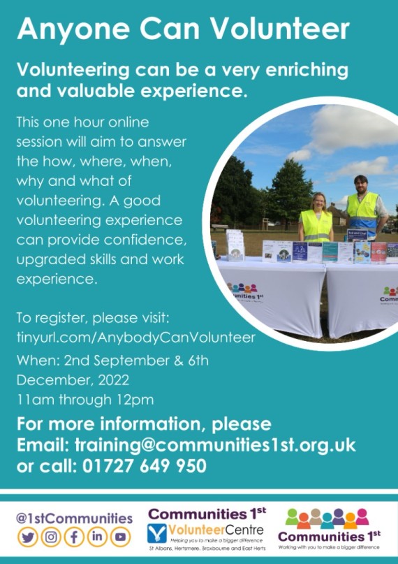 NHS Trusts across Hertfordshire and West Essex are recruiting a number of NHS professionals internationally each month to fill staffing shortages. Communities' 1st is looking for volunteers that can provide wrap-around social support to these professionals. We are looking for volunteers who are sociable, outgoing and have a warm and welcome personality. If you enjoy meeting new people and exploring different places around Hertfordshire, have an open mind, are positive about diversity and are committed to building relationships with people from different backgrounds, this maybe something you will enjoy doing. The role will entail taking the nurses on a tour around the town/area, introducing places of interest, parks, gyms, bus stations, helping with shopping and familiarising with local customs etc. Apply here.