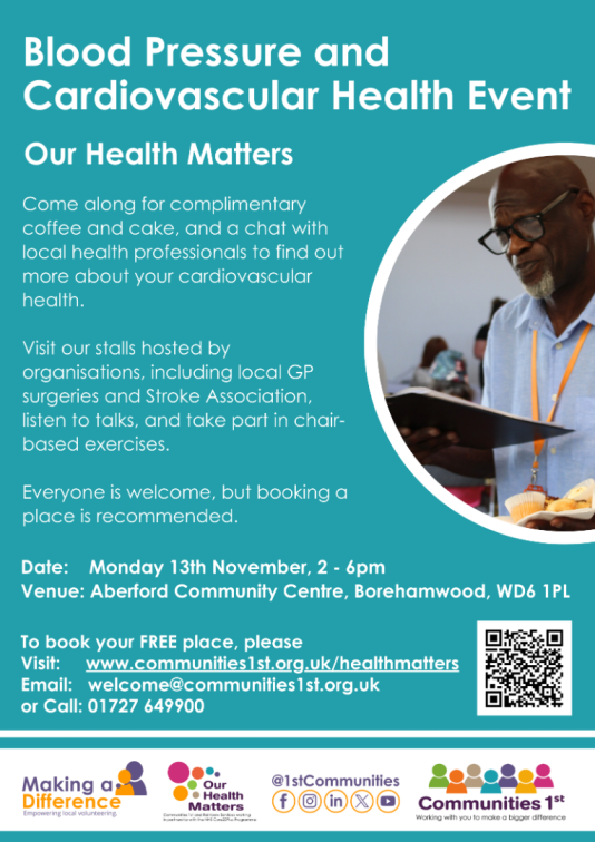 We are looking for helpful volunteers to support our next Health Event in Aberford Community Centre on the 13th of November 2023.